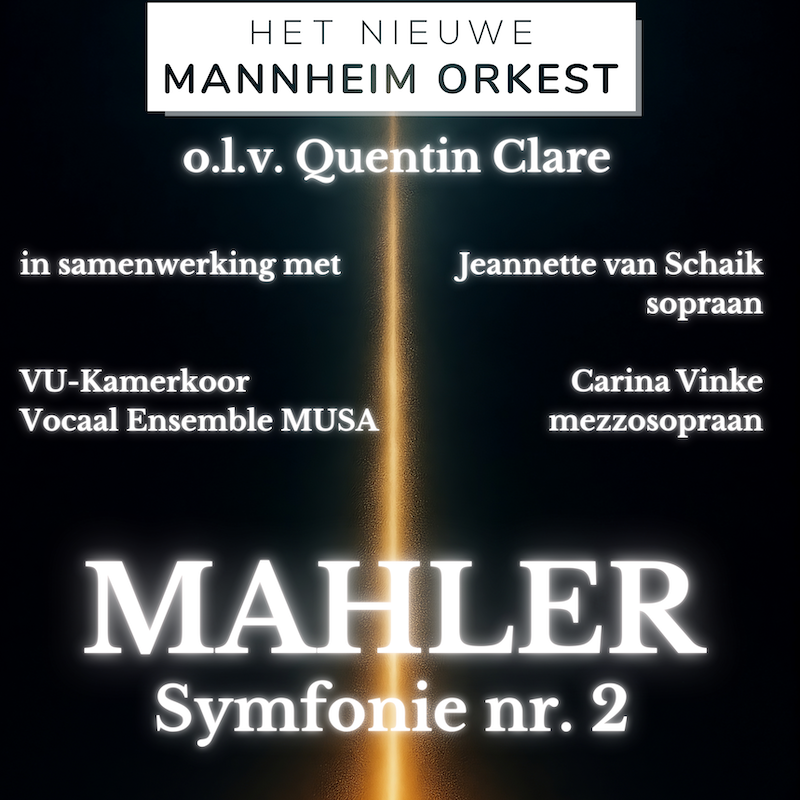 De magistrale Tweede symfonie van Gustav Mahler door Het Nieuwe Mannheimorkest o.l.v. Quinten Clare. Samen met het VU-kamerkoor werken we mee aan dit prachtige werk van Mahler. De solisten zijn sopraan Jeannette van Schaik en mezzosopraan Carina Vinke.